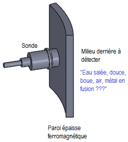 DETECTION D'OBJETS OU DE MILIEU CONDUCTEUR SITUES DERRIERE UNE PAROI EN ACIER MAGNETIQUE